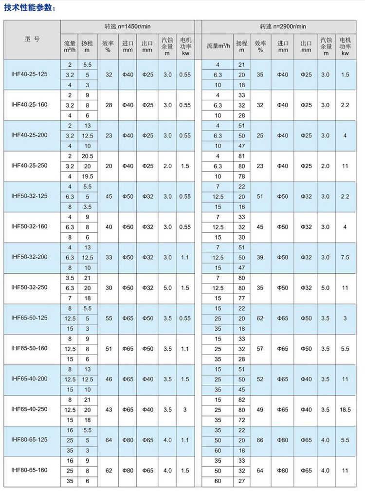 IHF襯氟塑料離心泵為單級(jí)單吸式氟塑料合金化工離心泵,是按國(guó)標(biāo)設(shè)計(jì)并結(jié)合非金屬泵的加工工藝設(shè)計(jì)生產(chǎn)的。該泵具有耐腐、耐磨、耐高溫、不老化、機(jī)械強(qiáng)度高、無(wú)毒素分解、使用溫度寬等優(yōu)點(diǎn),輸送介質(zhì)溫度為-85℃~200℃。該泵廣泛適用于化工、制藥、石油、冶金、電力、電鍍、酸洗、農(nóng)藥、造紙等行業(yè)中液體輸送、廢水處理和加酸等工藝流程。本泵可輸送任何濃度的硫酸、鹽酸、硝酸、醋酸、氫氟酸、王水、強(qiáng)鹼、強(qiáng)氧化劑、有機(jī)溶劑等強(qiáng)腐蝕性介質(zhì)的使用,是先進(jìn)的耐腐蝕裝備之一。